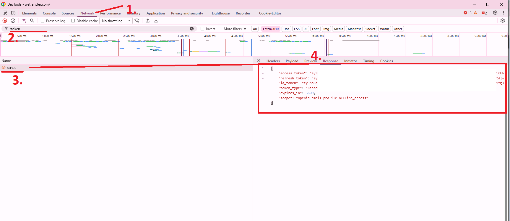 Type in oauth/token and refresh the tab-page while the developer tools are still open.